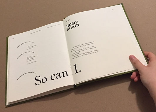Overall, I had fun experimenting with the typography and creating my own book. Although it was tedious, the end product was very satisfying. Along the way, I also figured out many tricks and new ideas for new books that I could make.
